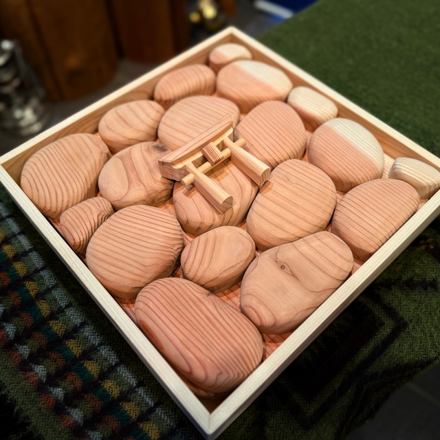 ※simanto工房製品についてショップの設定上【在庫あり】となっておりますが、作り立ての香りをお届けする為受注生産となっておりますので予めご了承下さい。少量在庫がある物もございますが制作には1~2週間以上かかる物もあります、お急ぎの場合は電話かメールによりお知らせ下さい。 --------------製品説明-------------- 木で出来た石を積む積み木です、こちらは枠にハマる様にパズルにしたり(激ムズ)枯山水を作ってみたり、想像力で様々な遊びが出来ます。また別商品のミニ神棚や侘び寂びセットとも相性が非常に良い製品です⭐︎よかったらそちらの製品と合わせて買うと楽しみ方の幅は格段に広がります。 パズルにすると激ムズですが裏面小さい数字が書いてますので、木目などをヒントに並べて見てください。バラバラにする前に写真を撮る事をオススメします⭐︎ セット内容は○鳥居(小)○岩(19個)○枠と四角い板 ※岩は杉でデザインや個数は多少変わる場合があります。 木でできた石積パズル。それは、ただの木工玩具ではありません。自然の「目」—木目、石目、潮目—を感じ、理解する心を育む、特別な体験を届けるセットです。このパズルは、木の温もりと石積の美しさを融合させ、遊びながら自然の調和や職人の魂に触れることができます。 建設業界がかつてない人手不足に直面し、石積の技術が遠い記憶になりつつある今、私の曾祖父が石を積み上げていた姿が、私の心に深く刻まれています。彼らの手仕事は、ただ石を積むだけでなく、自然と対話し、その「目」を活かして美と強さを生み出す芸術でした。私は木工職人ではありますが、そんな先人たちの精神を継ぎ、現代の子どもたちに伝えたいという願いから生まれました。 このセットを手に取れば、子どもたちは木の質感や石の表情を指先で感じ、積み上げる喜びを通じて創造力と感性を磨きます。一つひとつのピースには、木目が語る物語があり、石積の技が宿っています。遊びの中で、自然の「目」を見つける力が育まれ、いつか潮の流れや石の表情、木の生命を読み解く眼が養われるでしょう。 このパズルは、単なる遊び道具ではなく、過去と未来をつなぐ架け橋です。子どもたちが楽しみながら、自然への敬意やものづくりの心を学び、家族と過ごす温かな時間の中で、日本の美意識や職人の魂を感じてほしい。それが、私が木工を通じて伝えたい願いです。このセットが、子どもたちの心に小さな種をまき、いつか大きな可能性として花開くことを信じています。 --------------【各種オーダーについて】--------------- 当オンラインショップではsimanto工房の一部を掲載中です、手数料はかかりますがサイズ変更やオーダーメイドも受け付けております。ネットショップが苦手な方は電話やメールでも対応可能ですのでお問合せなどお気軽にご相談下さい。 ℡0880-39-2801 ✉[email protected]