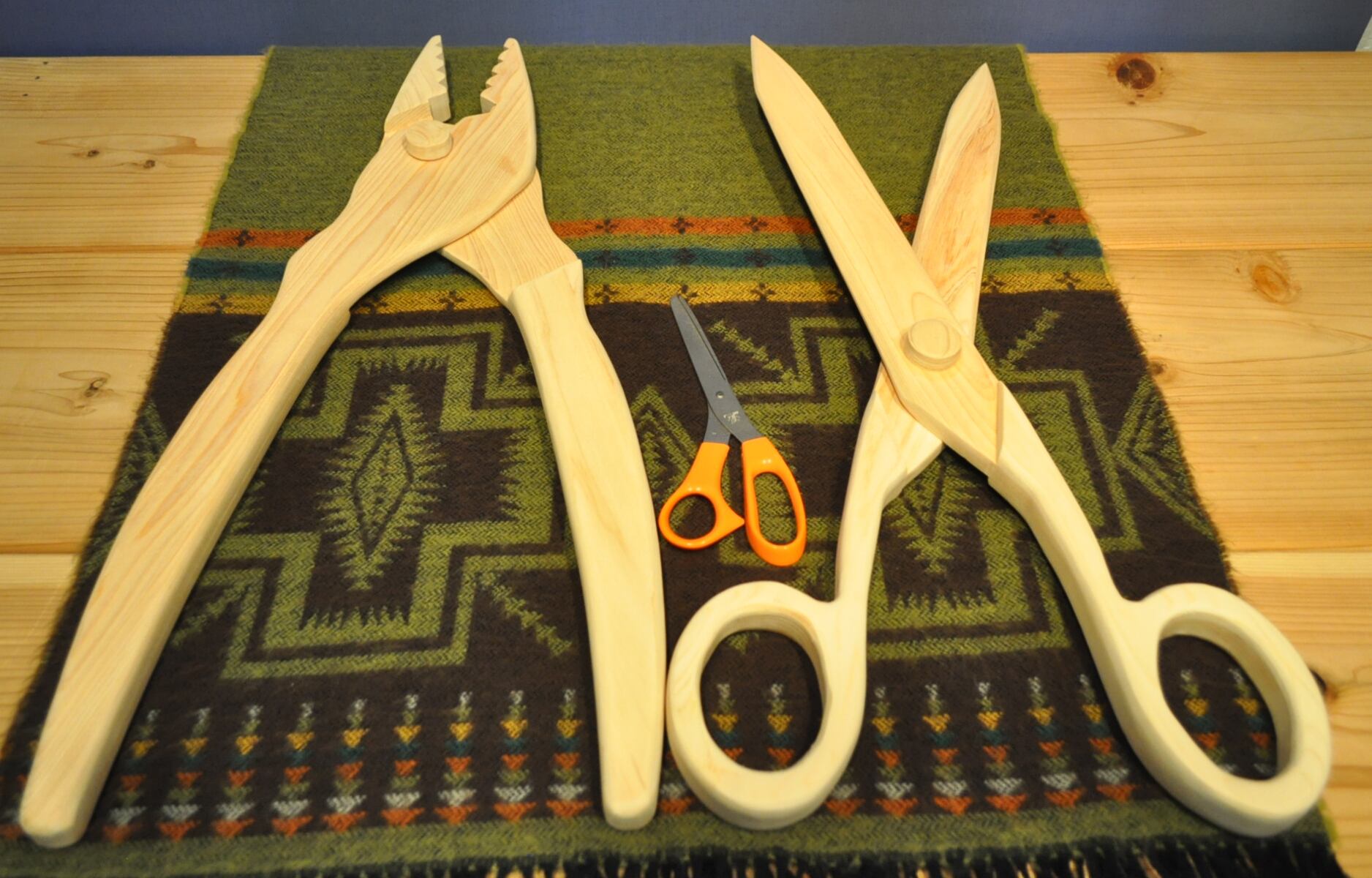 ハサミとペンチです、ちゃんと可動もしますがハサミは切れません、ペンチはあまり力を入れると破損するのでオブジェとしてお楽しみください。ハサミは美容室のロゴを入れたりしてプレゼントされるお客様もいます。