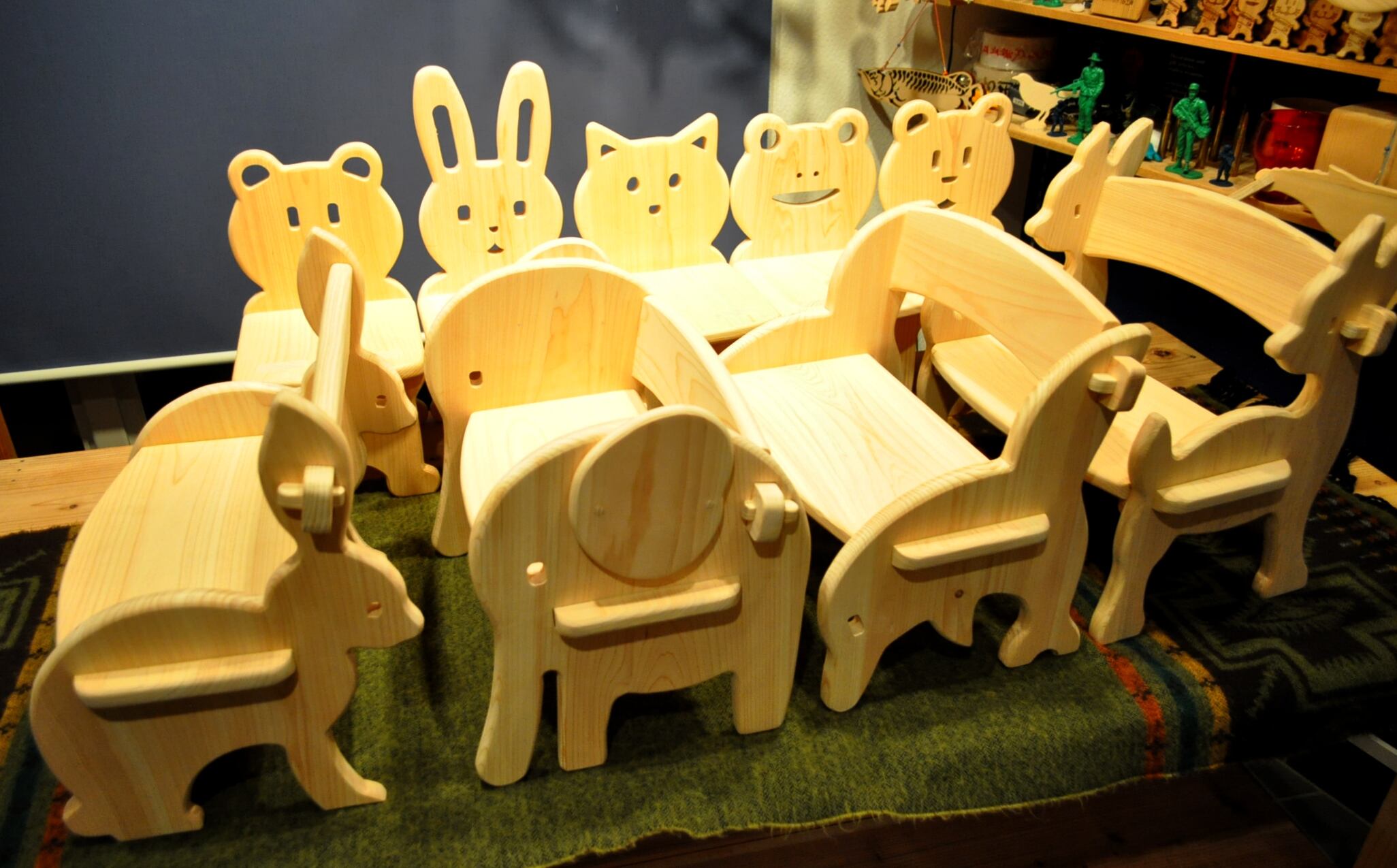 少し大きめのキッズチェアです、樹齢50年近くするヒノキの一枚板を使って作成しております。こちらの製品は貴重な材料を使っているので制作に時間がかかる場合があります。