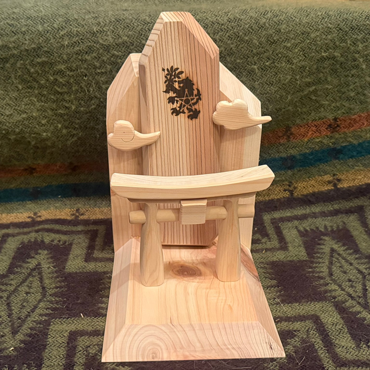 ばばあ『聞け、子らよ! このsimanto工房の神棚、ヒノキの聖木より生まれしもの。その香りは神々の息吹、鳥居は天と地を結ぶ門なり。清浄なる木目の中には、森の精霊が宿り、祈りを天に届けん。古の誓いを守り、穢れを祓うこの神聖なる場は、汝の心を清め、運命を導く光とならん。さあ、神を迎え入れる社を迎え!神々の加護をその手に掴むのじゃ!』