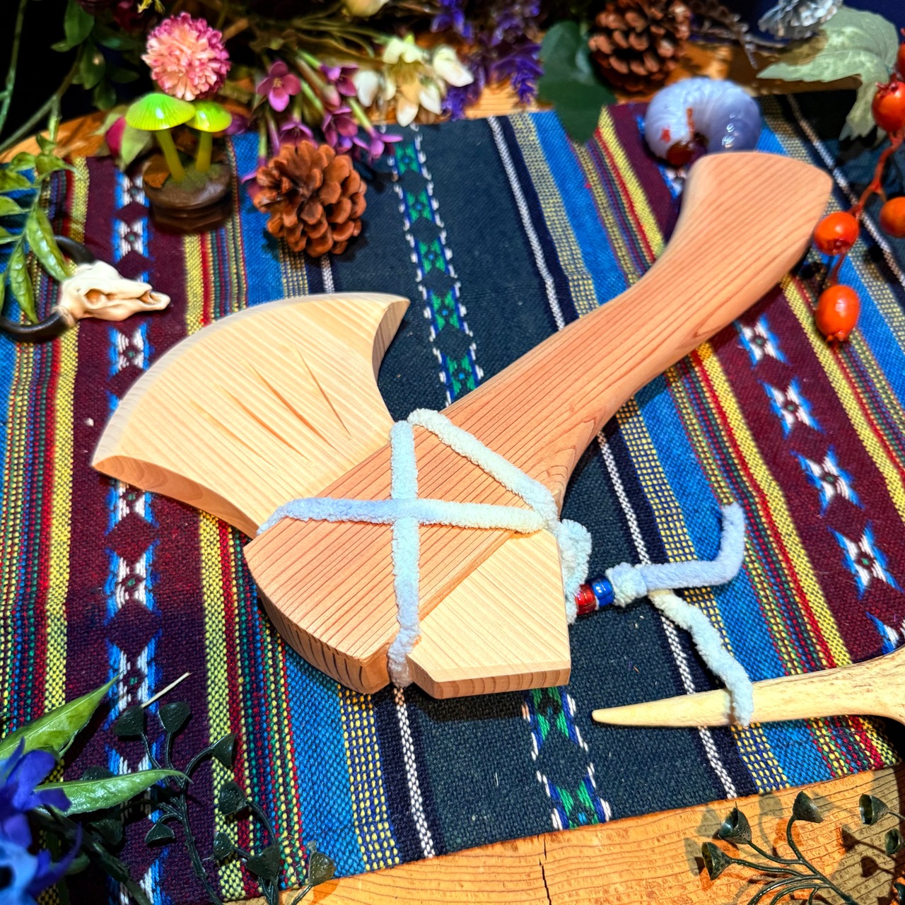 斧には3本と4本の溝を加工しております、その意味は『身(三)に降りかかる災いを避(四)けると言う山師達の願掛けや、四元素、太陽、水、土、そして空気の存在を示していて斧の名を「よき」と呼ぶ由来にもなっているそうです。simanto工房ならではのこだわりの一品です。台とセットもありますので、インテリアとしても使えます。