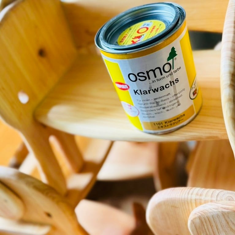 自然由来の成分: オスモカラーは、ひまわり油、大豆油、カルナバワックス、キャンデリラワックスなどの植物性オイルとワックスを主成分としており、化学的な溶剤や有害物質を最小限に抑えています。これにより、子供が触れたり口に入れたりしても安全性の高い塗料です。