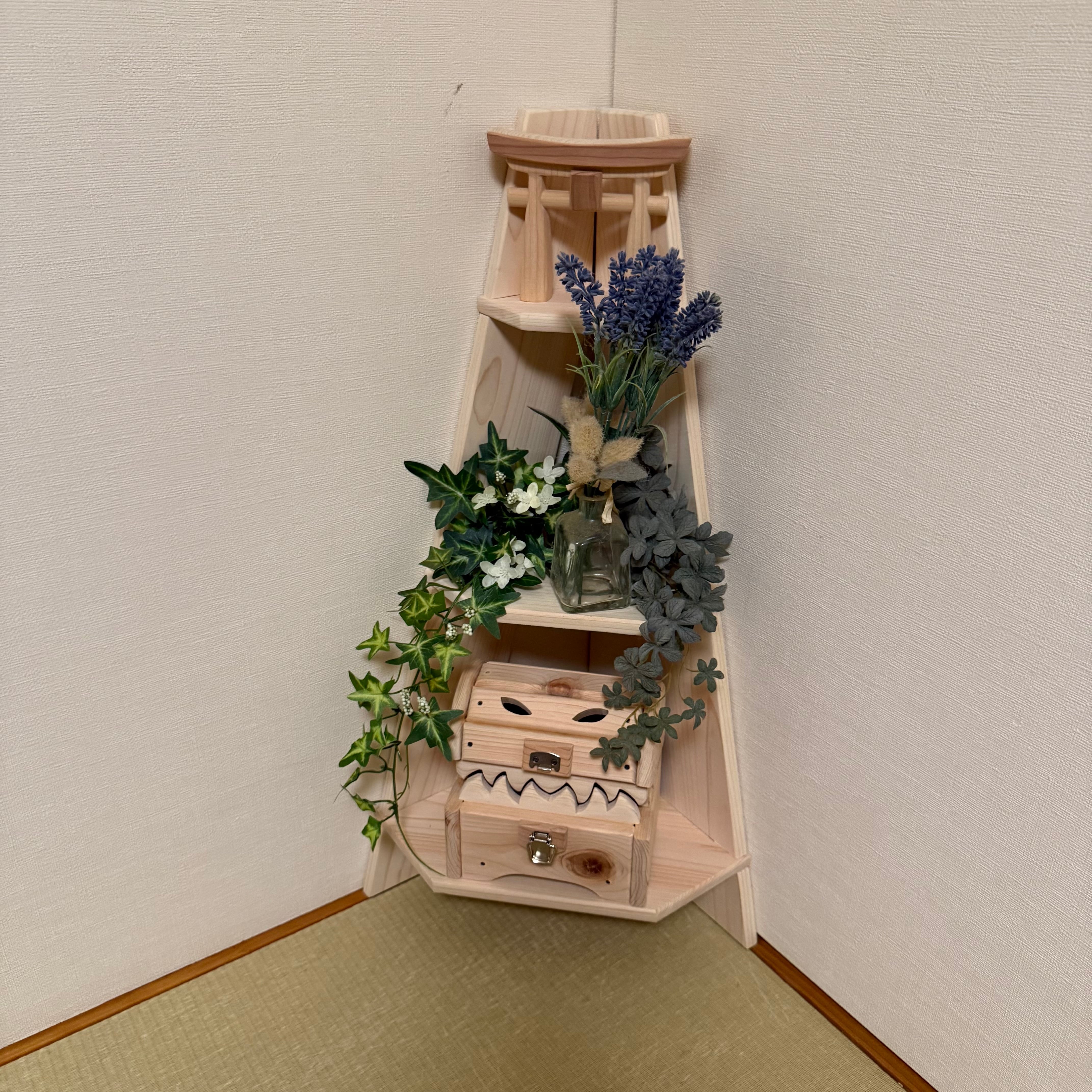simanto工房の小物飾りたいけどウチは狭くて飾れないよ・・ガチャガチャの小さいフィギアも増えすぎて飾る所ないよ・・そんな声にお応えして、「あなたの家は四角ですか?四角いですよね?」それではこの三角隅っこ飾り台が使えますよ★部屋の隅や階段の隅に立て掛ける事で飾りスペースを作り出せます。またショップなどにもお使い頂けると思います。