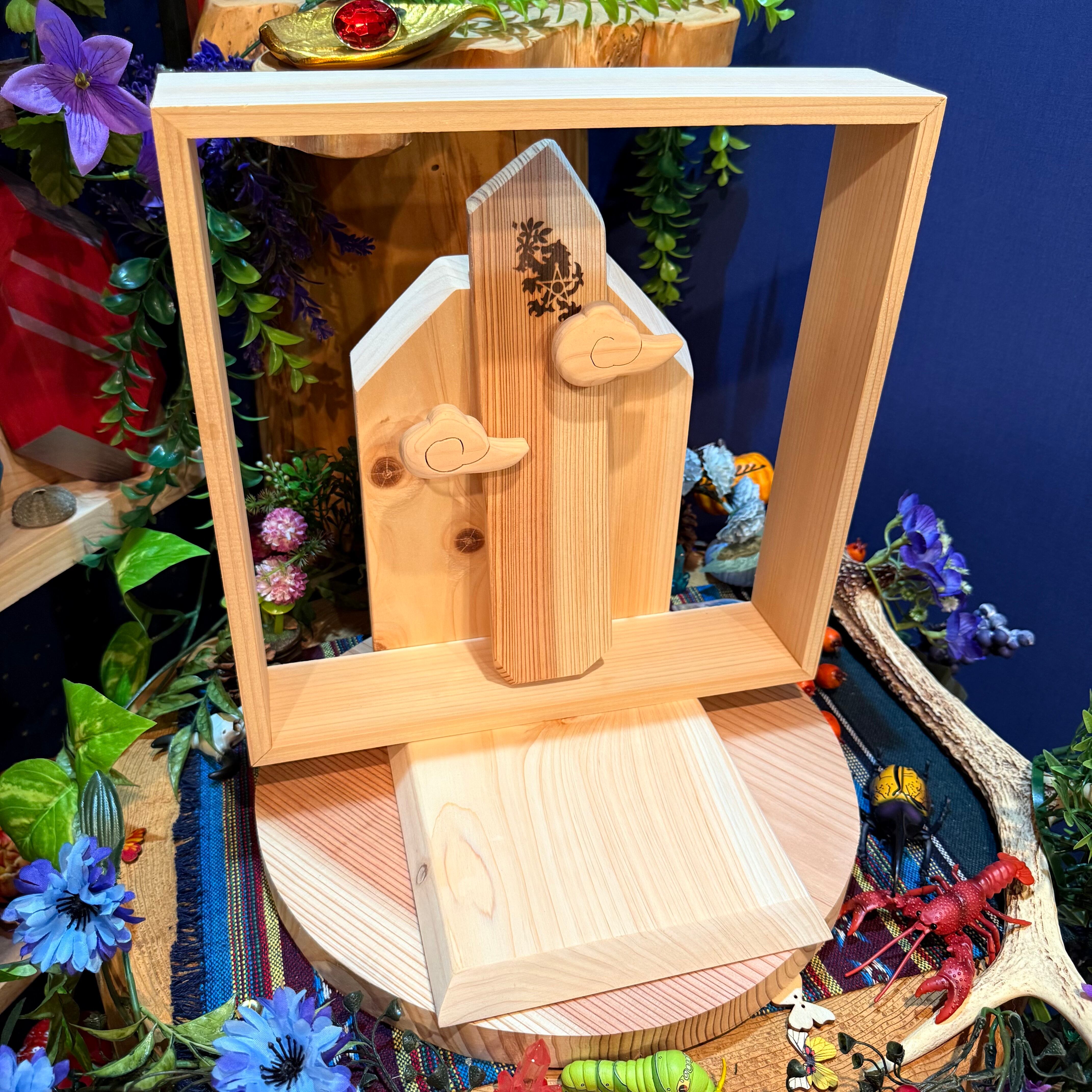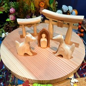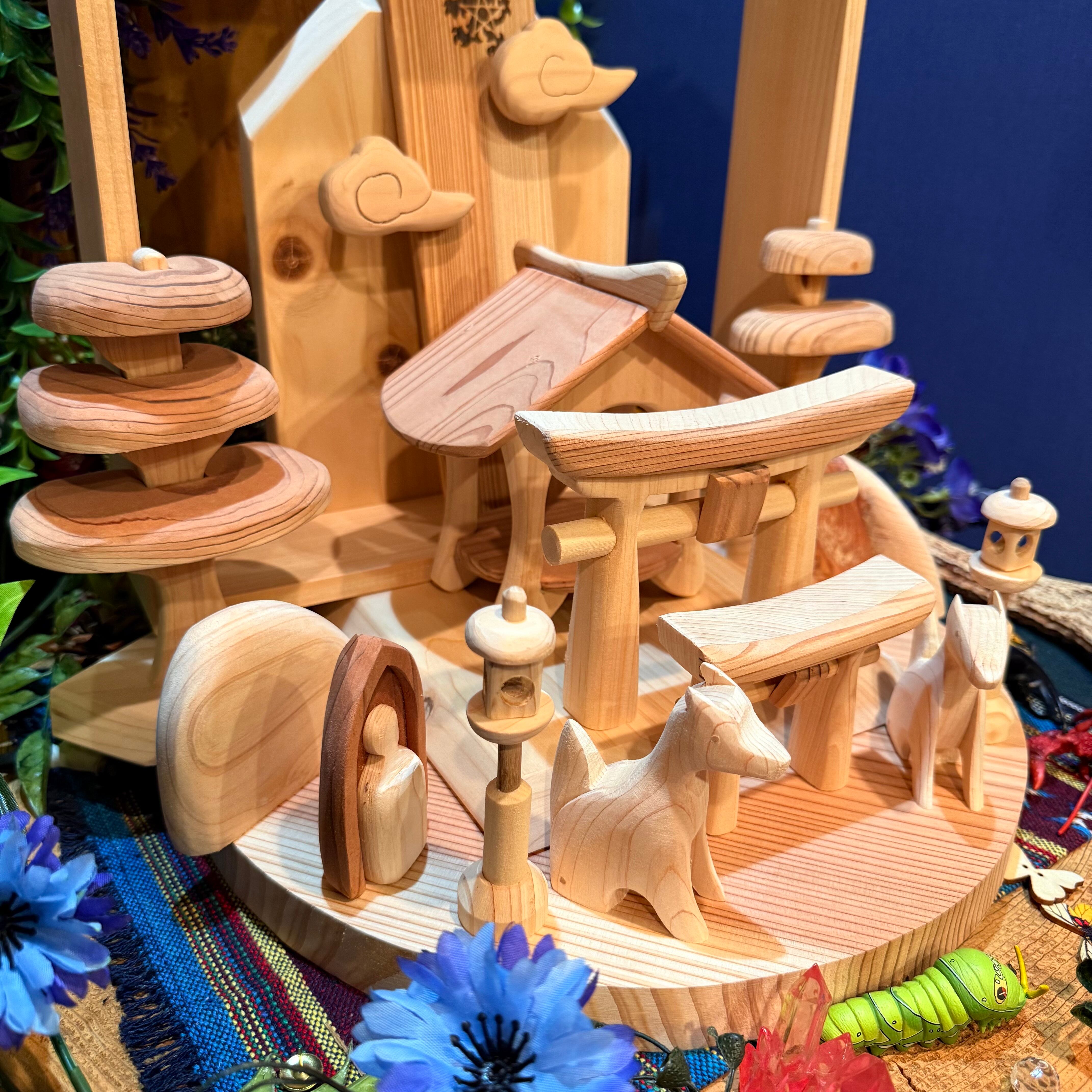 このセットは神棚でもありますが、子供たちが積み木のよう気軽に触れて遊べる、特別な遊び道具でもあります。日本の「侘び寂び」の美意識を自然と学びながら、木の温もりや独特の風合いを通じて日本の文化の素晴らしさを感じられます。