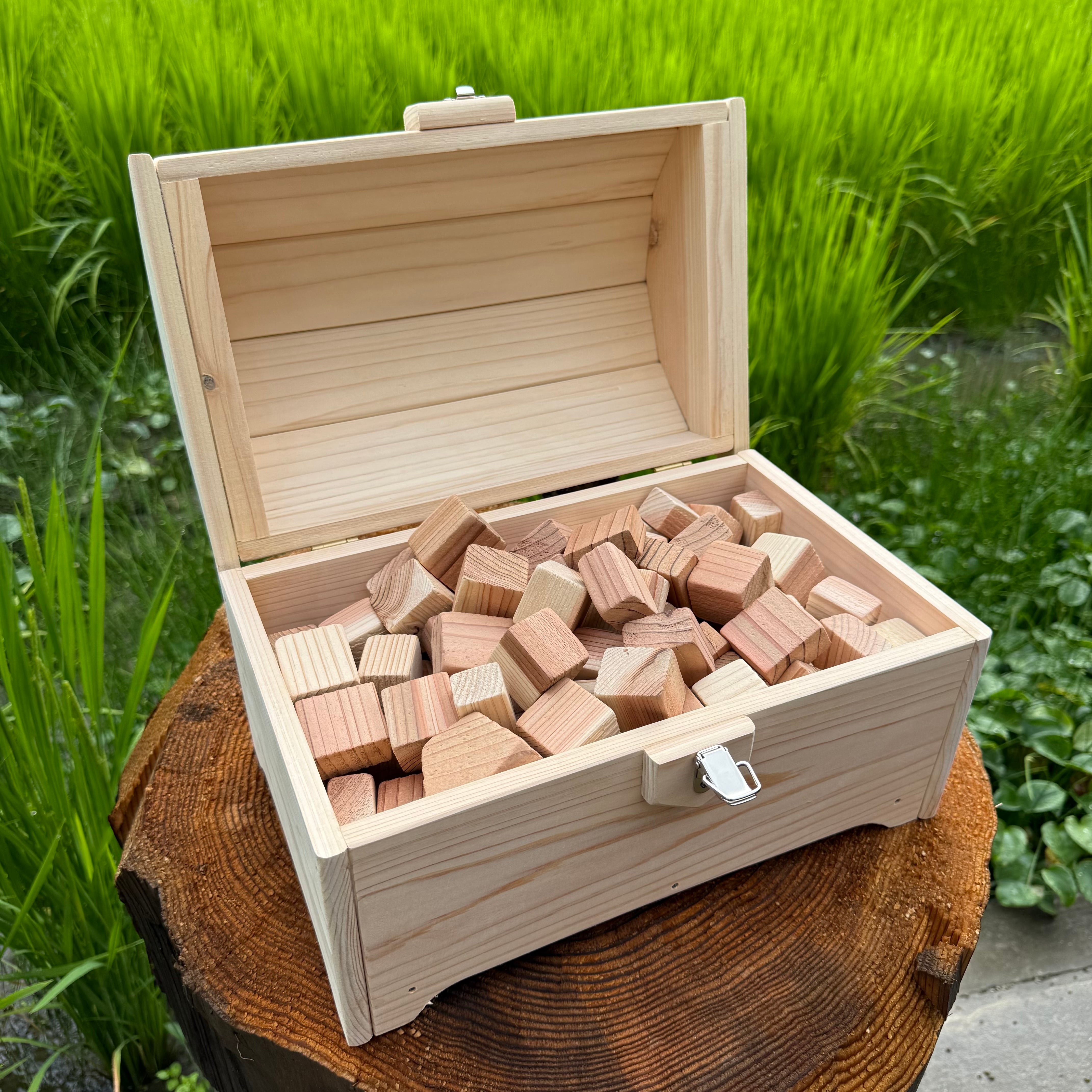 人気の宝箱の中サイズに杉の積み木〜素〜が約1kg(約100ピース)入ったサービスセットです★そのままプレゼント出来ます♪100ピース近くあるので子供数人で十分遊べます、たくさん部屋に撒き散らかして遊ぼう!!